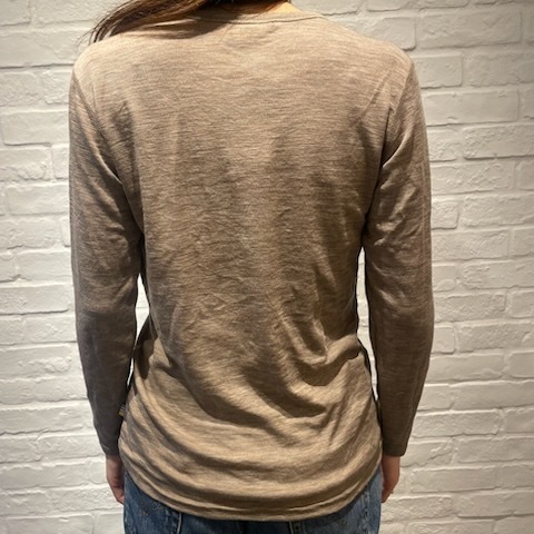 メリノウールは、吸湿した際に発熱する性質があり保温効果も高く、素肌に直接着用することで、冬はとても暖かく過ごせます。さらに、速乾性と通気性も抜群によく汗をかくとすぐに吸収され、肌がべたつくことなく、ちょうどよい体温を保つことができます。さらにシルクが加わる事で、メリノウール100%とは異なり、生地感がすこし薄く、よりさらりとした滑らかな肌触りが特徴です。