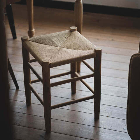どこにでも馴染む主張しすぎない上品な存在感が魅力のペーパーコードスツールです。脚と貫(ぬき)がすっきりと細身なのでお部屋の雰囲気を圧迫しないデザインとなっています。