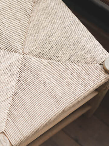 座面部分のペーパーコードは樹脂を浸透させた紙を撚り合わせた素材です。見た目以上の頑丈さと、サラッとした肌触り、マットな質感が特徴です。