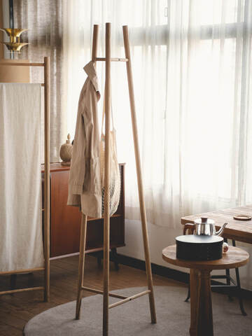 無造作に掛けたコートやシャツもさまになります。来客用に玄関に置いても便利です。