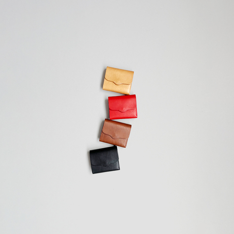 余分なものを削ぎ落とした、お札、カード、小銭が最低限入るサイズのミニマルなヌメ革のミニ財布です。