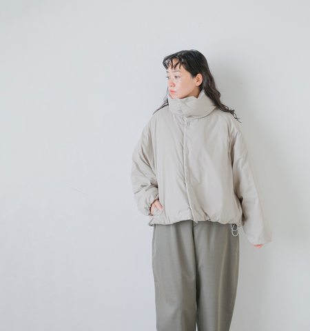 横から見てもふくらみのある丸みを帯びたシルエットが特徴。軽やかなショート丈で、ボリューム感がありながらもバランスよく着こなせます。