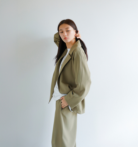 Agreable|ジャケット感覚で着られる ウールライク 袖タックショートコート