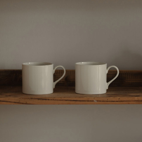 18世紀以降フランスでシールド用に作られたキュノワールのマグカップをヒントに、ストレートボディに小さめのサイズ感を採用。すっきりとしたボディに、大きめのハンドルを付けてよりクラシカルな印象に。色味はふんわりと柔らかなクリーム色の磁器土に、つややかな透明の釉薬をかけて仕上げたアイボリー。真っ白ではなくアンティークのクリームウェアのようなやさしい色味なので、古いお皿とも違和感なく並べていただけます。飽きのこないシンプルなカップ。どのシーンにおいても目立ちすぎることはありませんが、その凛とした佇まいは特別な空気を纏っています。