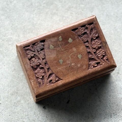 タイの職人さんが、小さなお花をひとつひとつ手彫りで彫った 温かみのある木製の小物入れ。