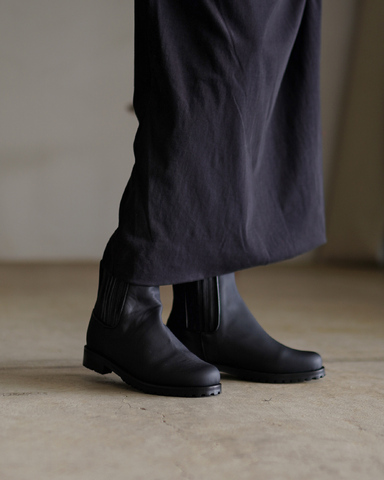 イギリス・ロンドンからインスパイアされた一足。サイドゴアをレザーで覆うことでカジュアル感を抑え、綺麗めな着こなしに似合う端正なルックスに仕上げられています。