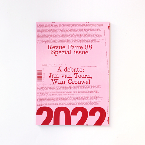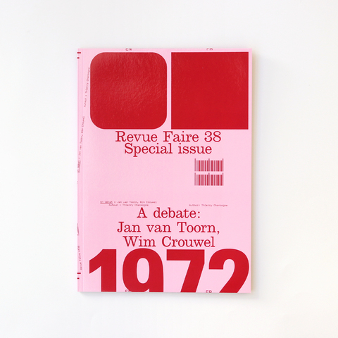 表紙がピンク×レッドの第38号は、オランダのグラフィックデザイン界において巨匠と謳われるウィム・クロウエとヤン・ファン・トールの二人が1972年11月にアムステルダムのフォードル美術館で行われた有名なディベートを取り上げています。