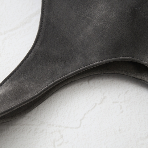 表面はスエードなので起毛していて、上品な発色です。ついつい撫でてしまう手触りの柔らかさのおかげで、持ち手が肩や手に食い込みにくく、長時間持っていても疲れません。また、豚革は他の動物の革と異なり、毛穴が表から裏まで貫通しているため通気性がとても良い素材です。カビが生えにくいのも嬉しいポイントです。