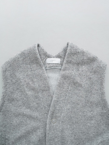 顔まわりがすっきりと見えるVネック、ほんのりコクーンシルエットが特徴のロングベストです。もこもことした素材感が可愛らしく、いつもの着こなしに一枚プラスするだけで秋冬らしさを演出します。