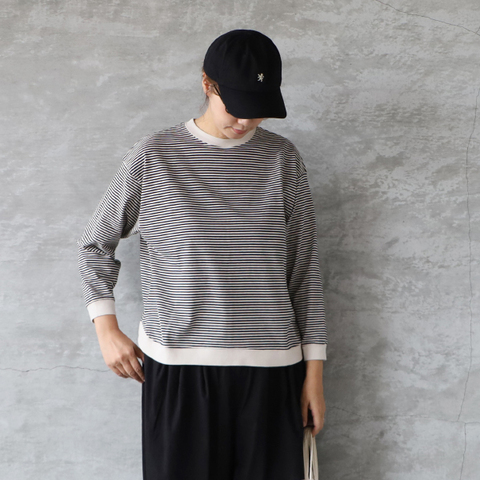 BLUE LAKE MARKET|アメリカンドライ天竺2 0.3cmピッチヘムラウンドボーダープルオーバー カットソー 7分袖Tシャツ