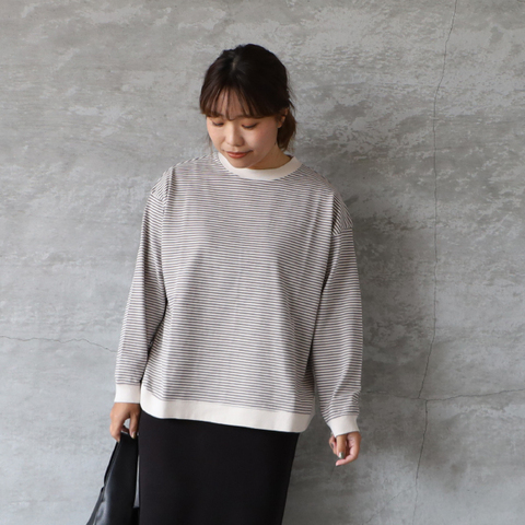 BLUE LAKE MARKET|アメリカンドライ天竺2 0.3cmピッチヘムラウンドボーダープルオーバー Tシャツ カットソー