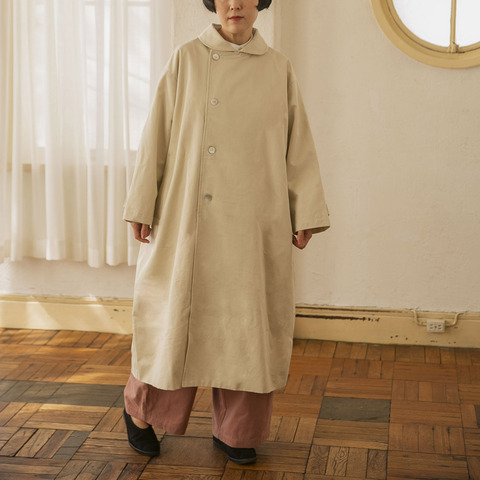 また、コートには珍しい貝ボタンを採用し、シンプルな中に上品なアクセントを加えました。
