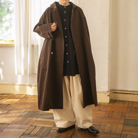 程よいハリと自然な光沢感が美しい、上質なコットンツイル素材を使用したコート。