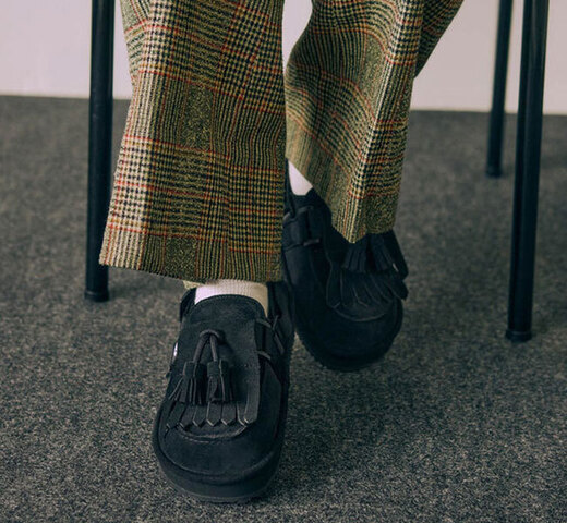 2024年秋冬デビューのSUNG MULEをベースに、シックなモカシン仕様へとアレンジ。着脱可能なキルトタッセルをあしらい、トラッドな雰囲気に仕上げた大人気の『MOC MULE TASSEL SUEDE(モック ミュール タッセル スエード)』が2025年秋冬にもラインナップ。カジュアルなスタイルはもちろん、ドレッシーなスタイルの"ハズシ"としても活躍する一足です。