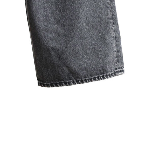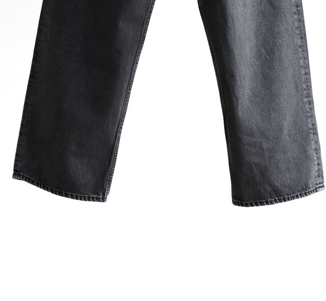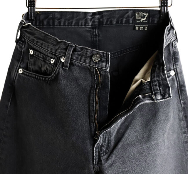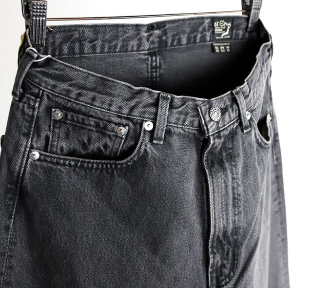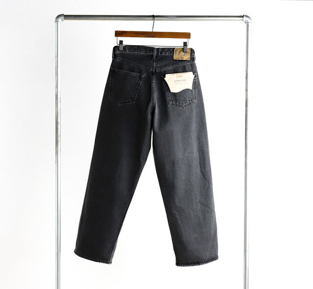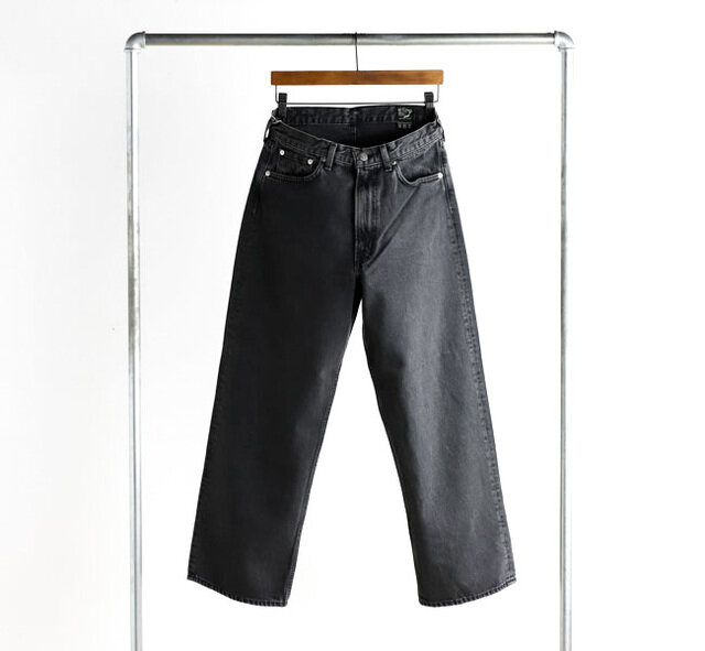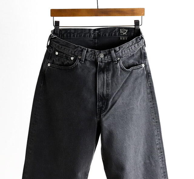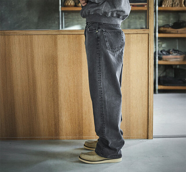 定番5ポケットのパンツの中で、最もバギーシルエットのデニムパンツ。 こちらはブラックデニムストーン。