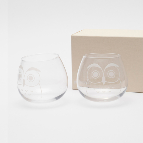 その大きな瞳とふくよかな愛らしい姿を " ゆらゆら " と揺れるグラスに仕立てました。