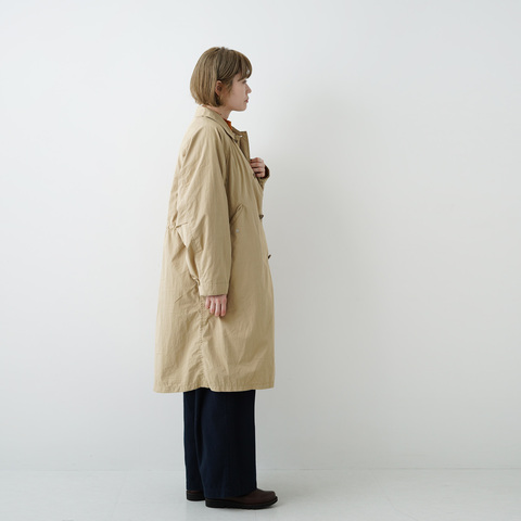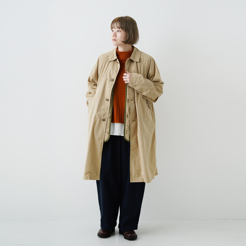 ステンカラーとミリタリーコートを掛け合わせたようなデザインのコート。取り外しできて、単体でも使えるライナー付きなので、気候や気分にあわせてマルチな着こなしができます。