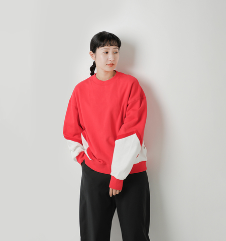 贅沢な100%コットンの起毛フリースを使用した暖かなスウェット。袖口、サイドの配色デザインがスタイリングをおしゃれ顔に仕上げてくれる一枚。袖まわりに余裕をもたせたオーバーサイズで、見た目にもトレンドライクでこなれ感たっぷりの着こなしにシフト。週末のラフなコーデから、きれいめなパンツと合わせたタウンユースまで、幅広いシーンで活躍してくれます。