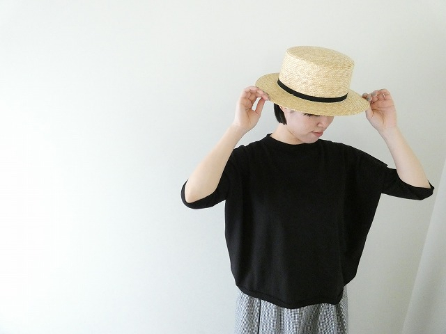 首もとをすっきり見せてくれるボートネックに、腕まわりを軽やかにカバーする5分袖のデザイン。