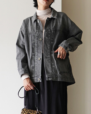伝統的な1stスタイルをアレンジし、大きなタックをフロントに施したデニムジャケット。ナチュラルなムラ感を持つ12ozデニムを使用し、こなれ感のあるスタイルに導きます。