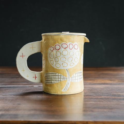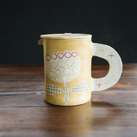 土の素材を感じられる素材と手仕事を感じられる形。その器の中をのびのびと自由に大胆に描かれているようで絶妙なバランスな色使いがもう好きー!土の質感を感じられる作品は使いづらいんじゃないかなと私も心配になることがあるのですが止水剤で処理をしていただいているので気兼ねなくお使いいただけます。器の質感やその部分によって使われている色が異なるので、盛り付ける素材や食べ始める場所でまた違った表情を楽しめて何度でも楽しさを感じられます。緑たっぷりのサラダに、赤いイチゴがのったケーキ。あったかいコーヒーや紅茶。シチューやスープなど。いろいろと合いそうな器をお届けいただいています。ぜひ、ご覧になって下さいね。