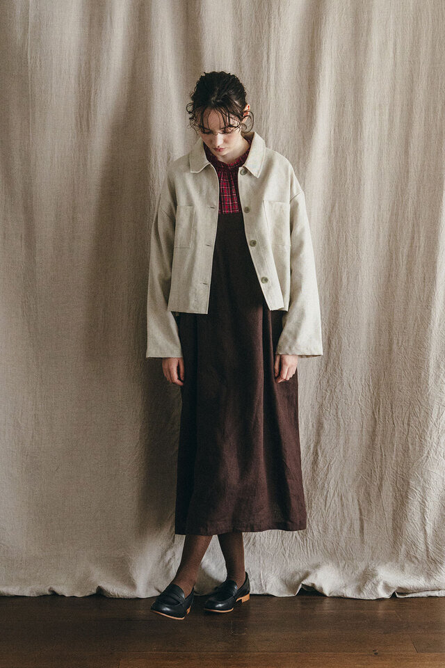 UNIVERSAL TISSU|フロントのダブルボタンがオシャレなクックシャツワンピース ネイビーピンストライプ kurashisha