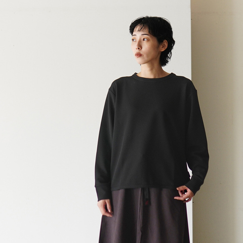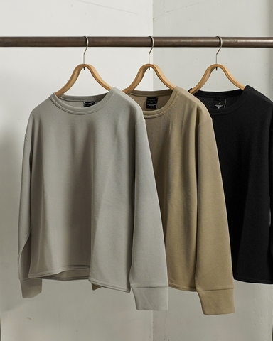 ブランド定番ワッフル素材のロンT。癖のないシンプルなデザインで季節を問わず使いやすい。通気が良く一日着てもベタ付かず快適。