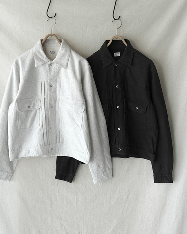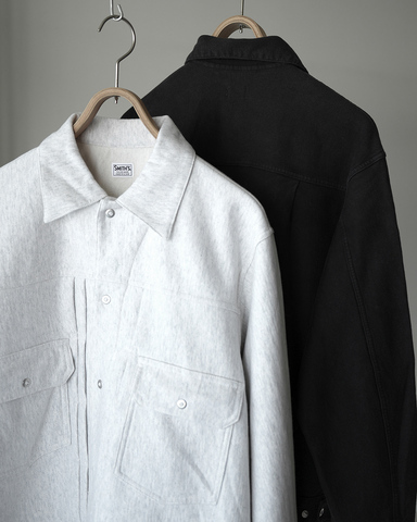 トラッカージャケットの無骨なデザインを、スウェット素材で再構築しました。ワークな雰囲気を持ちながら、柔らかくデイリーに着こなせる都会的な一着です。