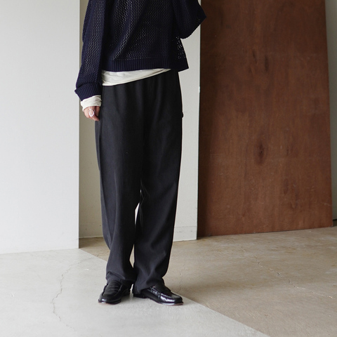 ワークパンツの要素を落とし込んだスウェット素材のイージーパンツ。ペインターパンツの特徴であるポケット下のループや、クライミングパンツに見られるクロッチ部分のマチなど、リラックスと洗練をバランス良く配置した都会的な一本です。
