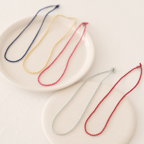 着けたときに重たくないか、ゴワつかないか。普段の服装に、どんな色や輝きを添えることができるか。糸でも強度を持たせ、いかに長く使っていただけるか。そんなふうに着ける人のことを考えながら、素材を組み合わせていきます。