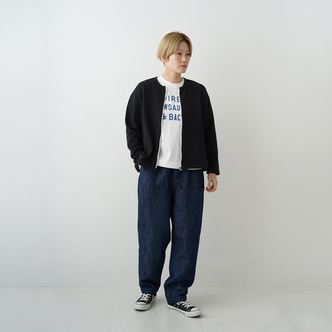 CLIP.TAB人気素材の綿麻デニムを使用しています。リネンが入っているので、ナチュラルな生地感で、軽くソフトな肌触り。履きこむほどに色が馴染み、経年変化を楽しめます。