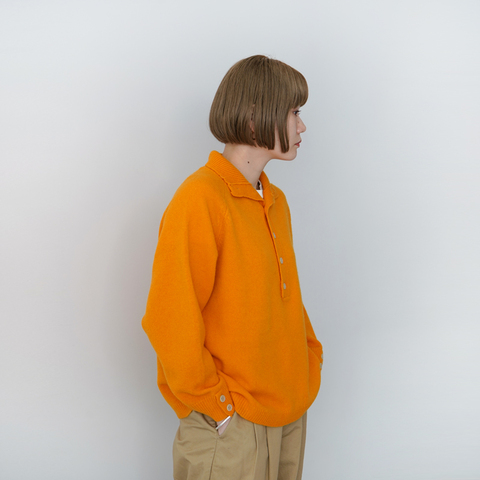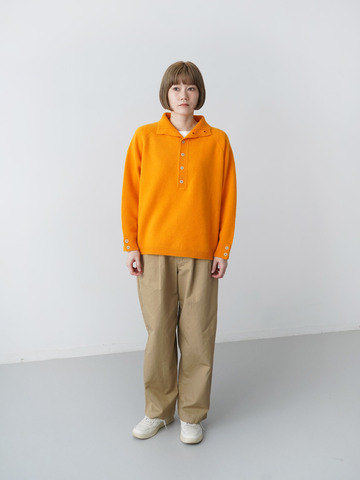 ふっくらとしたメリノウールを編みたてた、ゆったりラフなシルエットのニットです。タートルネックの首元に、胸下あたりまでボタンが付いたヘンリー開きが特徴です。