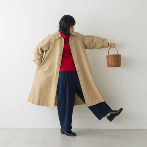 そんなミドルエイジ世代のわたしたちに向けてビジュアルも、使いやすさも、シーンを選ばない万能さも兼ね備えたコットンナイロン素材のコートが、くらすことの2nd ライン“くらすこと +to(プラストゥ)”から登場。