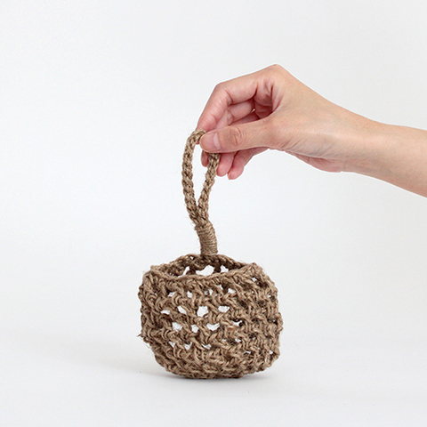 松野屋|麻ひも野菜入れ 小 保存袋 麻ひもかご バスケット 東北クロッシェ 手編み