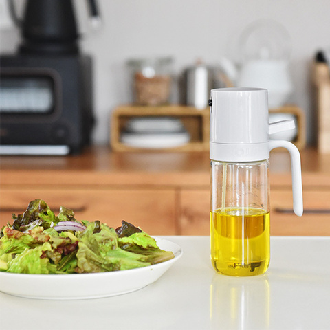 そんな油のプチストレスを一気に解消できるのが、「油の量を抑える オイルスプレーボトル」。片手でサッとプッシュすれば、細かなミスト状の油が広がります。必要最小限の油で調理できるから、毎日の食事がもっとヘルシーに。