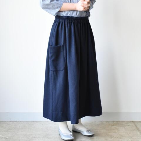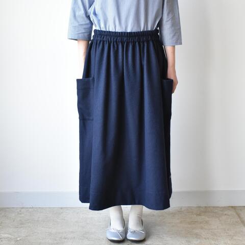 ウール素材のあたたかさと、大きめなポケットがアクセントになるフレアスカートを仕立てました。
