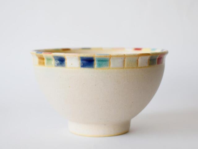 カラフルな色合いが人気のモザイクタイルシリーズのお茶碗です。
