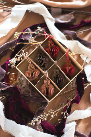 細かな陰影が美しい深みのあるウォームカラーのペーパーオーナメント
