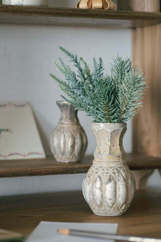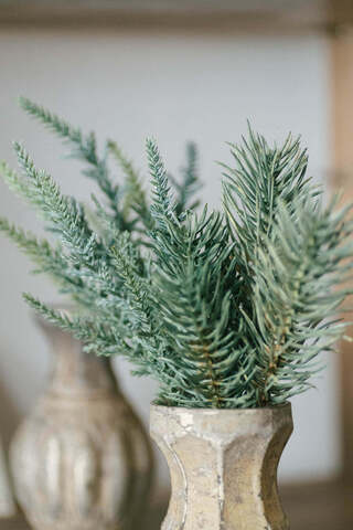 パインは3本1束になっていてボリュームがあるので、Feurie No.19の丸みを帯びたボディとバランスよく馴染み、挿すだけで完成度の高いディスプレイに。枝先の揺れや重なりが、冬の空気感をそっと運んでくれます。