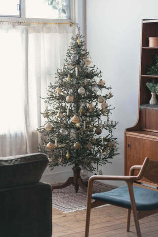No.3は、落ち着いた印象のコーディネートに特におすすめ。「URHO(ウルホ)」や「HUONE(フオネ)」のくすんだ深緑のツリーと相性が良く、オーナメントはゴールドやカッパー系を合わせるとシックなクリスマススタイルに仕上がります。