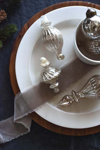 艶やかなシルバーで統一された、8種17個セットのガラスオーナメント「Silver Assort(シルバーアソート)」。