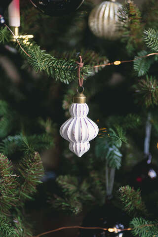 マットホワイトとアンティークゴールドの奥行きある色合いが、ほかのオーナメントとも自然に馴染みます。