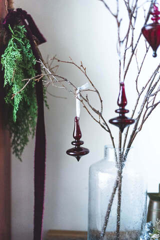 Berry Lily ガラスオーナメント - 深みのある赤が映える、エレガントな縦長フォルム