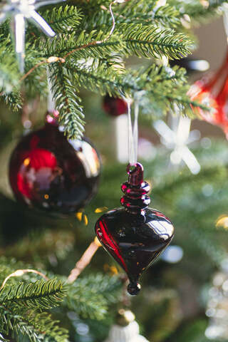 透明感のあるガラスが光を柔らかく反射し、深みのある赤をより魅力的に映し出します。シルバーやホワイトのオーナメントを合わせれば、沈みがちな赤もすっきりと引き立ち、洗練されたコーディネートに。