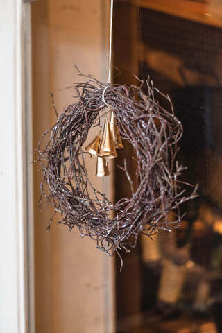 直径約23cmのコンパクトなサイズ感で、ドアや壁、テーブル上などにさりげなく飾れるのが魅力。枝の重なりが生み出す立体感と、少しラフな枝の流れが、ナチュラルで洗練された冬の空間を演出します。