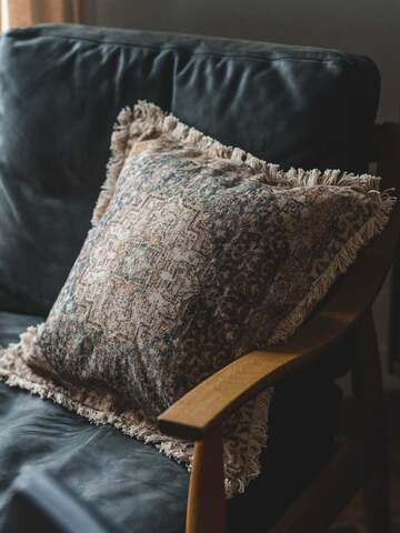 シックなコーディネートを楽しめる、ヴィンテージラグのようなクッションカバー