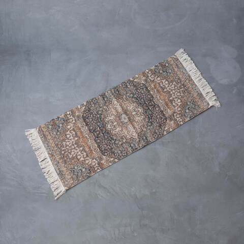 生地はコットン70%の優しい風合い。太めの糸が生む秋冬らしい重みのある質感があります。裾のフリンジも陰影を作り出してくれるので、立体感のある豊かなコーディネートを楽しめます。長年使い込まれたような風合いが物語を感じさせる、ヴィンテージライクなインテリアがお好きな方へもおすすめのディスプレイマットです。