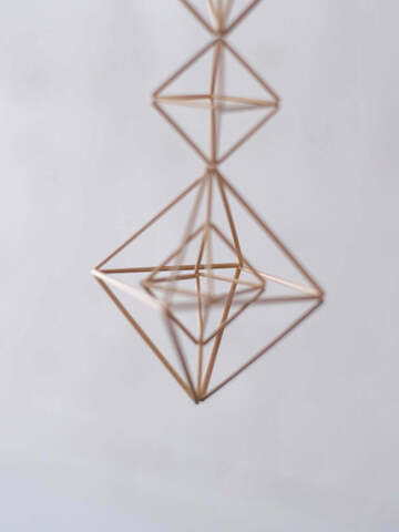 シンプルな正八面体を縦に繋げた《夢の中》は窓辺やキャビネットの横などに似合うすっきりとしたシルエット。同シリーズを複数飾っても絵になります。