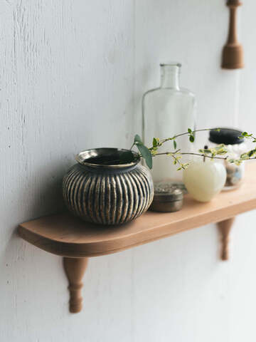 No.5はシンプルなシルエットのキャンドルホルダー。キャンドルはもちろん、ガラス素材なので水を張り小さな花器としても活躍しますし、フェイクグリーンを入れても素敵です。一度すぼまった形なので数本の花や葉もほどよくまとまり活けやすい形。