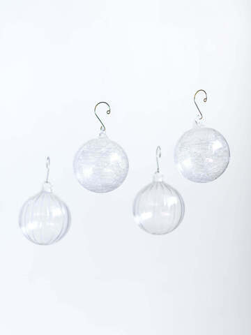 定番の8cmタイプはボリュームのあるツリーでもしっかりと存在感を出せるサイズ。ぷっくりとした縦ラインが愛らしい型と、ガラスファイバーを閉じ込めた浮遊感の有る型。2種のデザインを2個ずつセットにしました。
